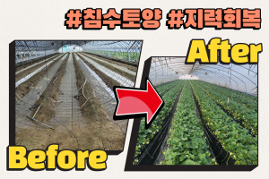 반복 침수 딸기 토경 하우스 옥케이 적용 후 병해 없이 안정적인 생육 유지